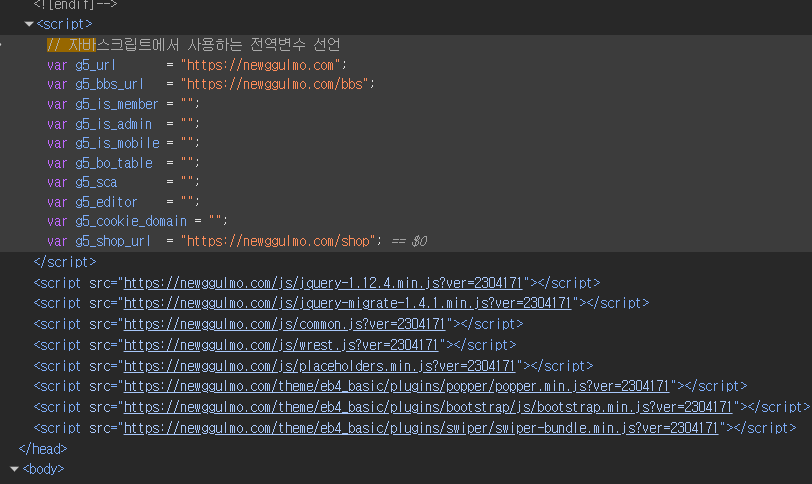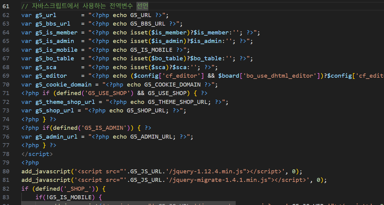 g5_url , g5_bbs_url ๋ฑ๋ฑ ๋ณ์๋ค์ ์ ์ธํ๋ ํํธ๊ฐ ์์๋ค.