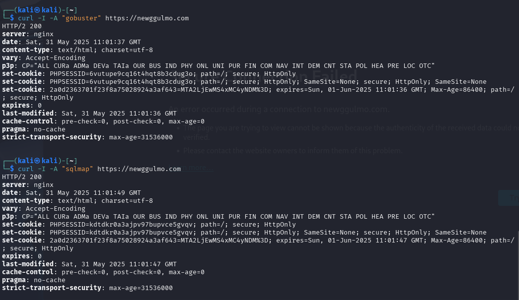 - ๋๊ตฌ: `whatweb https://newggulmo.com`