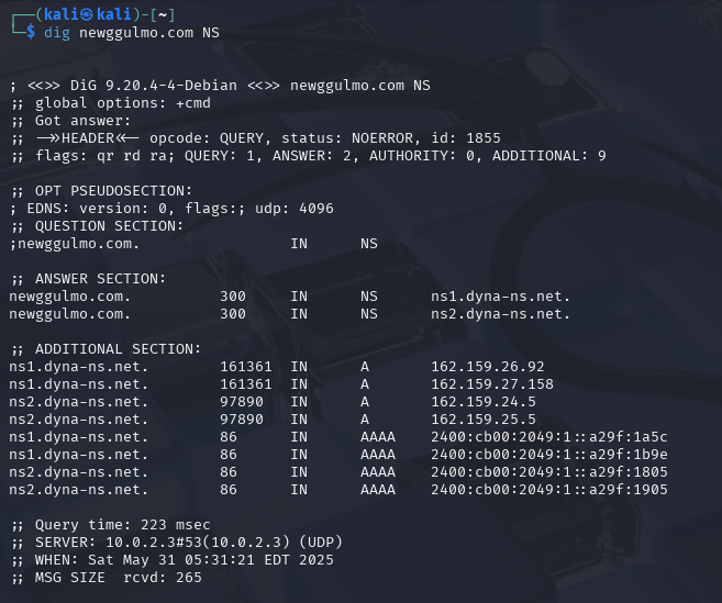 newggulmo.com ๋๋ฉ์ธ์ด DYNA-NS.NET์ด๋ผ๋ DNS ์๋ฒ๋ฅผ ์ฌ์ฉํ๊ณ ์๋ค๋ ์๋ฏธ