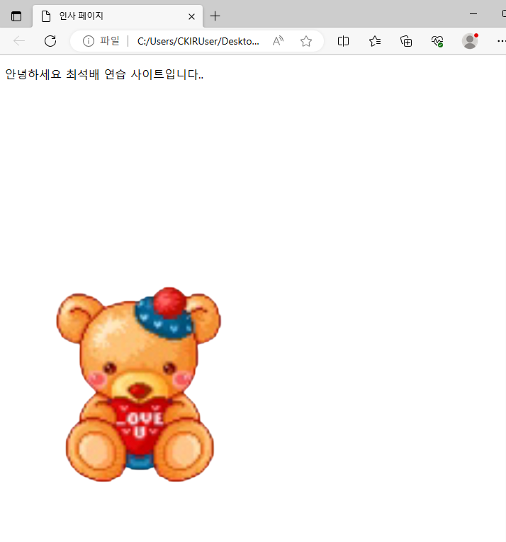 텍스트 파일에 해당 문서를 작성후에 .html 확장자로 저장 후 브라우저로 켜보면 정상적으로 실행이 된다.