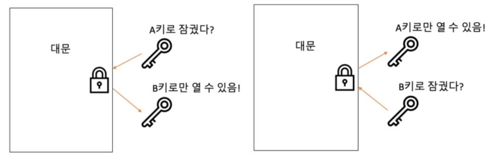 허나 이 방식의 경우 보안상 좋지 않기에 이를 해결하기 위한 방식이 공개키 암호화 방식이다.