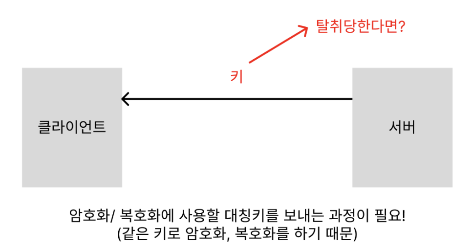 암호화, 복호화 하는데 같은 키를 사용하는데 이 키를 탈취당한다면 암호화,복호화 하는 의미가 없을것 이다.