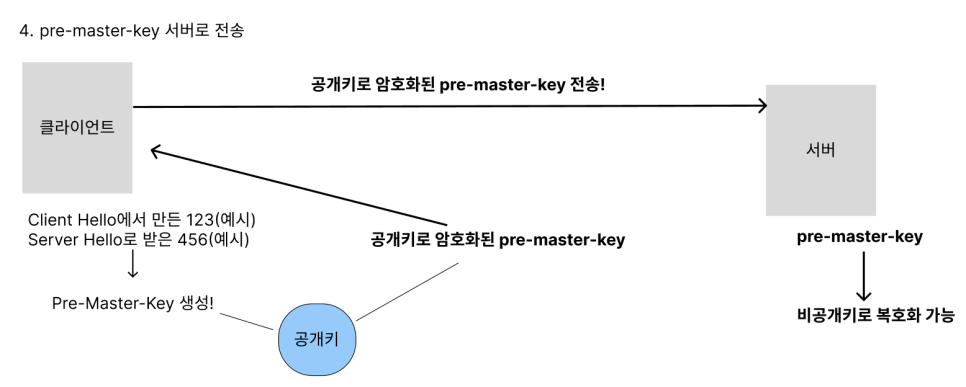 클라이언트가 이미 갖고있는 "공개키"를 사용해 Pre-master-key를 암호화 하여 서버로 보낸다.
