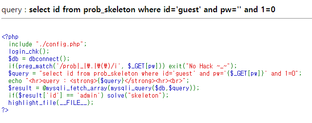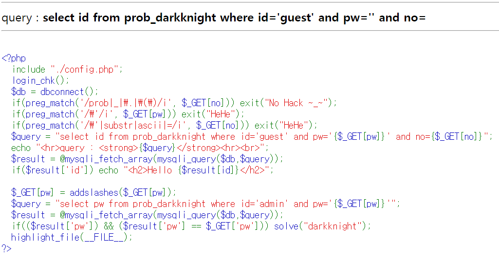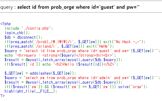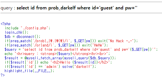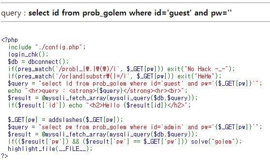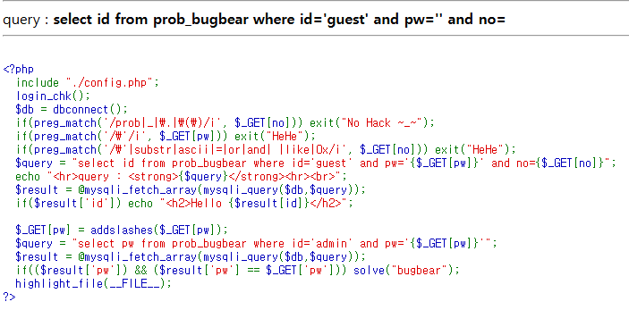 no 파라미터에 prob, _, ., () , ', substr , ascii , = , or , and , 공백( ), like, 0x 문자열 필터링pw 파라미터에 ' 필터링데이터베이스 구조형태 유추idpwnoguest??admin?? 지난 문제인 12번 문제에서 like가 필터링되는 부분이 추가된것 말고는 딱히 차이점이 없다. like말고도 비슷한 기능을 가진 연산자들로 필터링 우회를 하면 된다.LIKE 외에도 SQL 필터링을 우회할 수 있는 연산자와 방법들은 다음과 같습니다:REGEXP: 정규 표현식을 사용해 패턴 매칭을 할 수 있습니다.BETWEEN: 범위를 지정해 값 비교를 할 수 있습니다.IN: 여러 값을 조건으로 지정하여 OR 대체가 가능합니다., !=: = 대신 불일치 조건으로 사용.문자열..